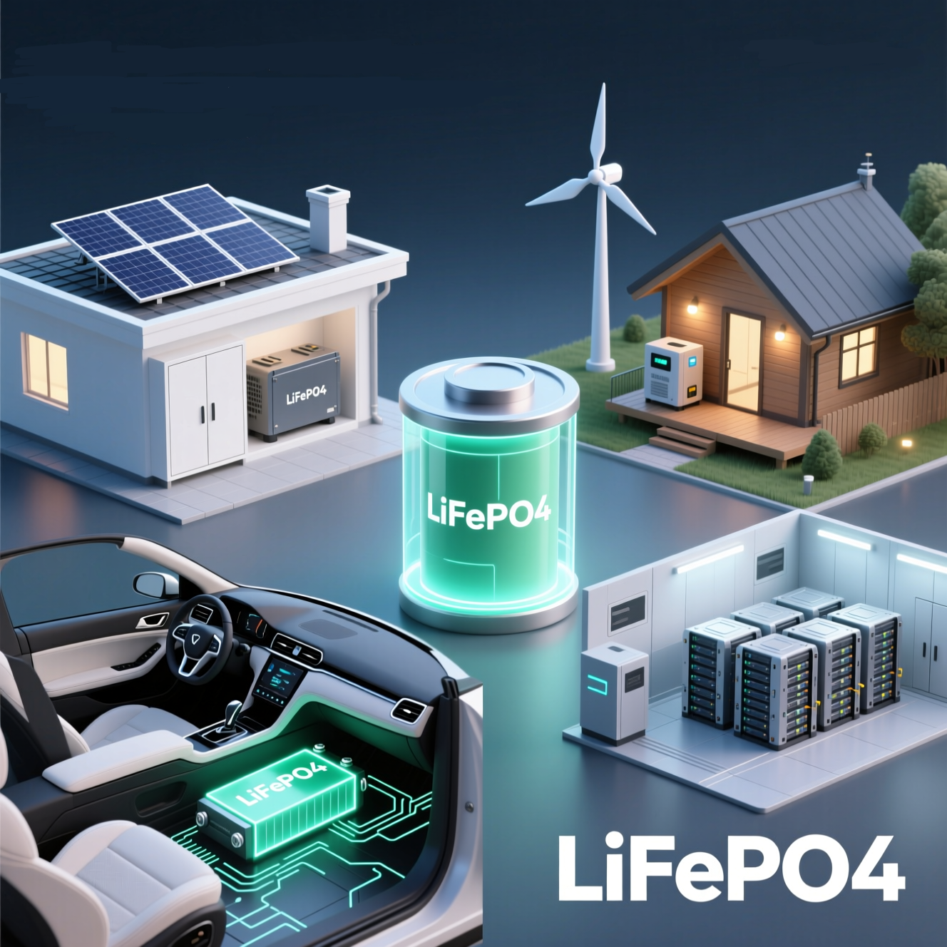 • LiFePO₄ идеально подходят для домашних и промышленных солнечных электростанций: